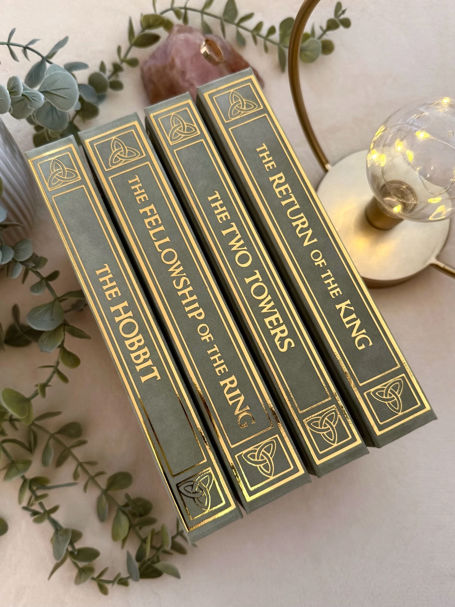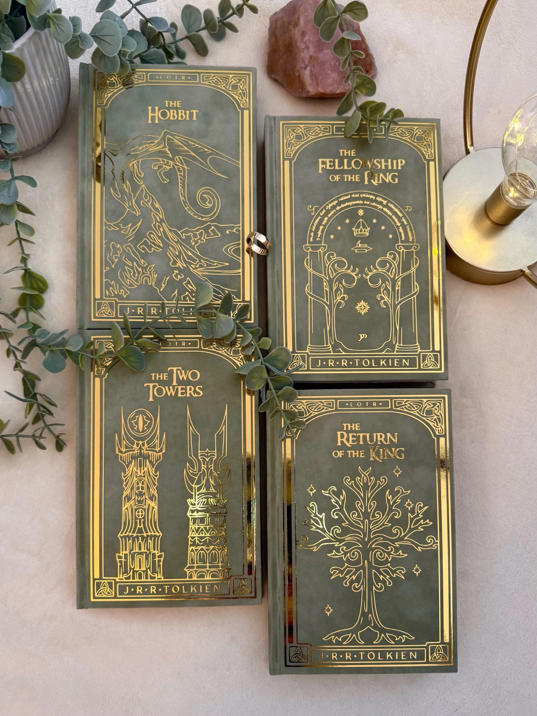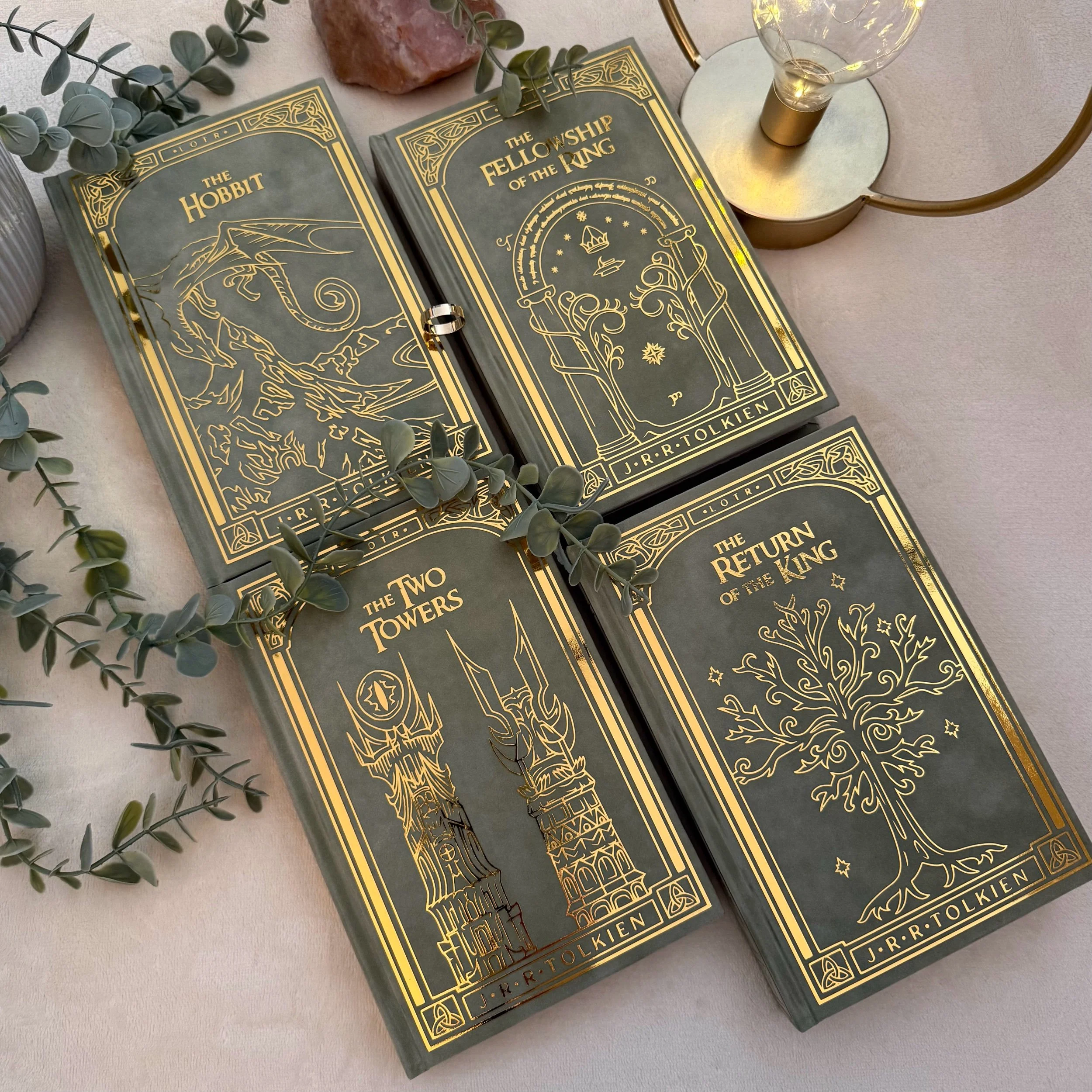 The Lord of the Rings by J. R. R. Tolkien rebound books. Includes The Hobbit, The Fellowship of the Ring, The Two Towers and The Return of the King.