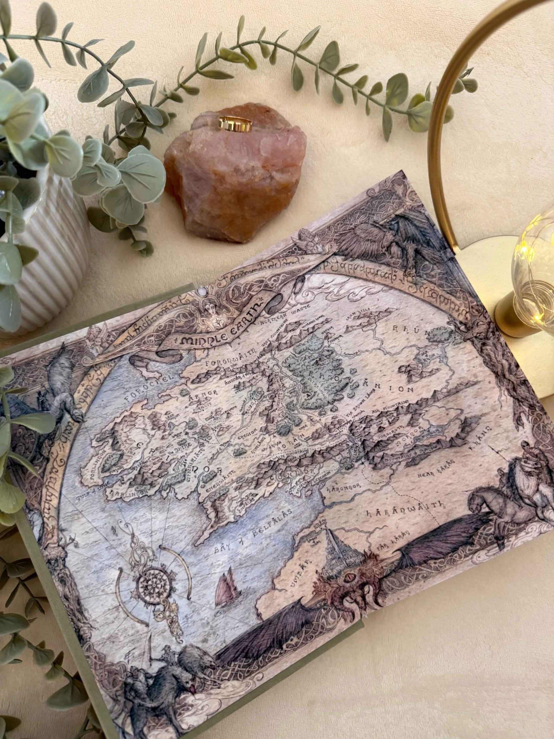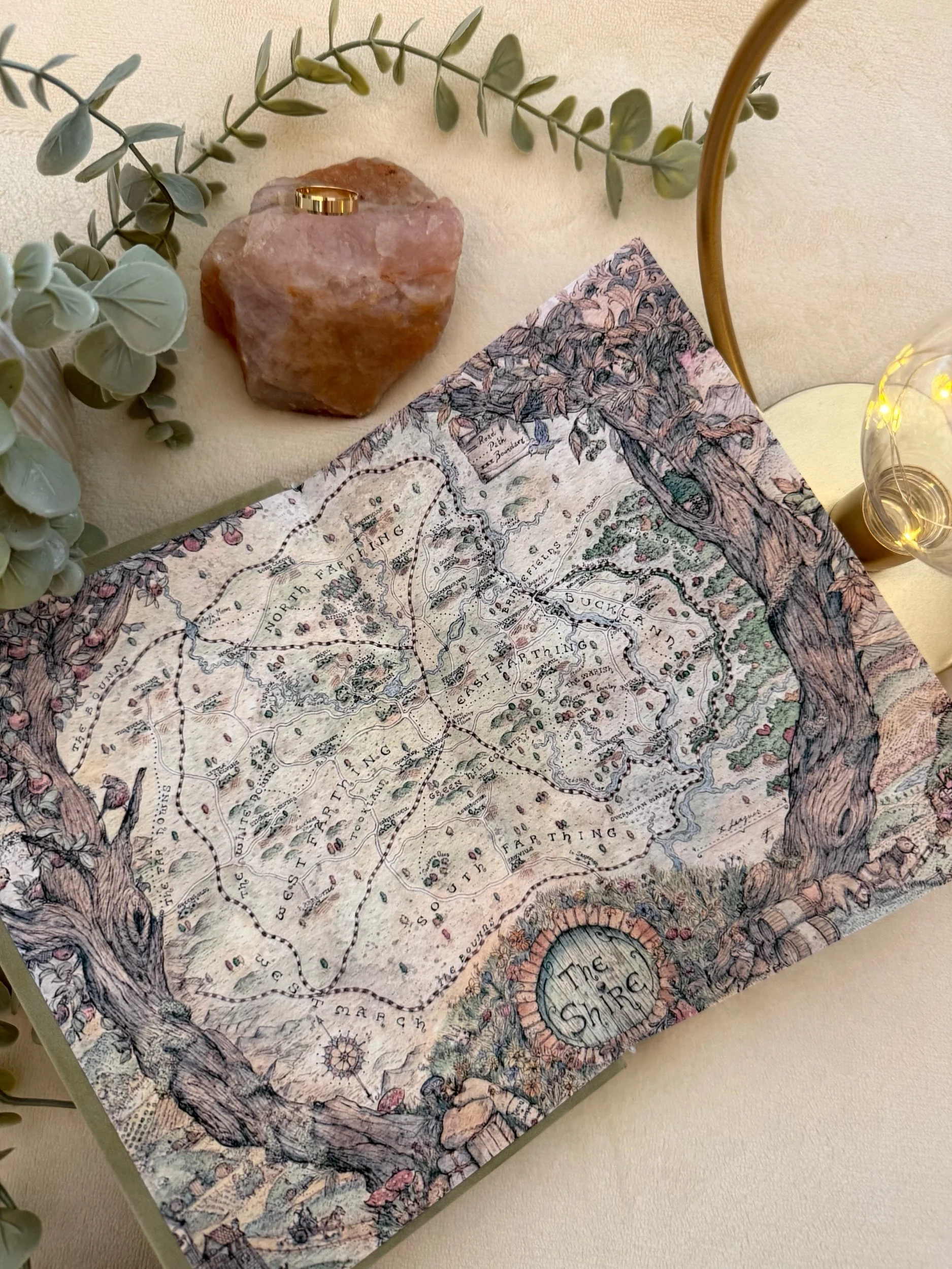 Featuring a metallic gold HTV design on sage green faux suede book cloth.